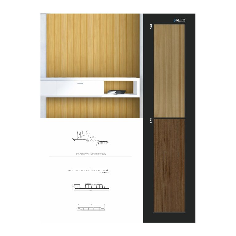 Available in panel size 2900 x 180 x 21mm, plank size 2900 x 400 x 9mm, and skirt size 2900 x 95 x 11mm, these panels are versatile for a variety of interior applications. Their easy-to-clean surface makes them perfect for modern homes, offices, and commercial spaces.